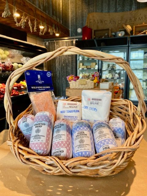 A rotating mix of grass fed beef and pork from Casa Cano Farms, and chicken, fish, and pork from our farm partners – Zwonitzer Family Farm, Lummi Island Coop, and Wood’s Meats.