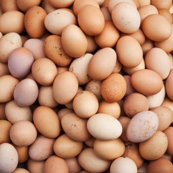 These eggs are from Deep Roots Farm in Penngrove, they are from 9 varieties of chickens that are pasture raised (moved weekly with chicken tractors through fields that have cover crop or recently finished veggie crops). They grow supplemental soldier fly larva for them and they do receive some grain and they are currently (May โ25) transitioning that to organic grain.